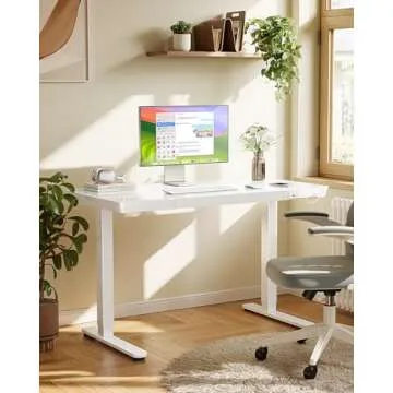 Marsail Glass Standing Desk with Drawer, 48 x 24 inch Electric Standing Desk, Height Adjustable Desk with One-Piece Tabletop & USB Charging Ports, Sit Stand Desk with Storage for Home & Office White