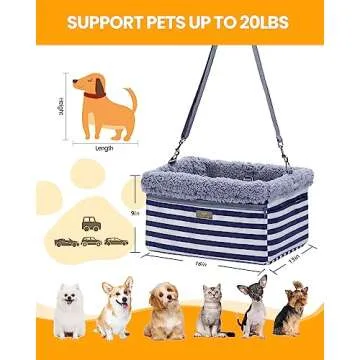 Show more Introducing the MARSLABO Dog Car Seat, the perfect travel solution for small pets weighing up to 20 lbs. This upgraded dog booster seat features a sturdy metal frame construction, ensuring your furry friend enjoys a safe, elevated ride while being able to see out the window. Designed with your pet's comfort in mind, it provides an unobstructed view which helps alleviate anxiety during car rides and creates a delightful travel experience for both you and your pet. Installation is a breeze; worry less about keeping your furry ones secure during trips and focus more on the adventures ahead!