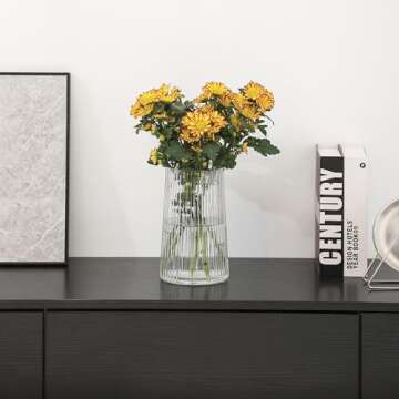 MARTAGE Clear Glass Vase for Flower, Glass Flower Vase, Flower Vase for Bouquet, Modern Glass Vase, Ribbed Glass Vase for Living Room, Bedroom, Dining Table, Office, Wedding, Centerpieces, 8 Inches