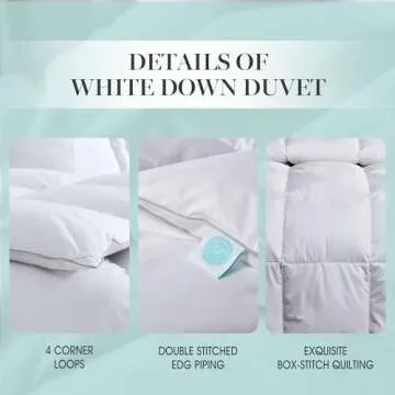MARTHA STEWART White Down Feather Comforter Queen Size - 600 Fill Power 100% Cotton Down Duvet Insert, Made in USA, All Season Medium Warmth Comforter with Corner Loops - 90" x 90"