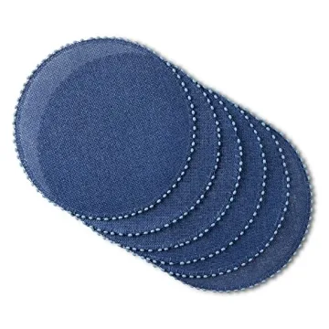 Martha Stewart Woven Water Resistant Lindos Placemat Set 6-Pack, 15" Round, Navy Blue