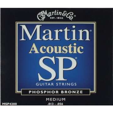 Show moreExperience the extraordinary sound and durability of the Martin Acoustic Guitar Strings (MSP4200). Designed for musicians who seek a bright and balanced tone, these strings feature a medium string gauge of .013, .017, .026W, .035W, .045W, and .056W, making them perfect for both strumming and fingerpicking styles. Crafted with a high-quality steel core, these strings minimize breakage, ensuring that you can focus on your music without interruptions. The premium composition of 92% copper and 8% tin offers a rich tonal quality that elevates your performance, whether you are jamming at home or playing on stage.