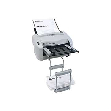 Show more Discover the ultimate solution for your folding needs with this remarkable automatic document folding machine. Perfectly engineered for use in smaller mailrooms, offices, churches, and associations, this device elevates productivity by automatically feeding and folding a stack of documents with ease. At an impressive speed of up to 4,000 documents per hour, it is designed to handle large volumes without compromising efficiency. The versatility of this machine is highlighted by its ability to fold up to 3 sheets at a time using a manual bypass, making it ideal for various document types, including stapled sets.