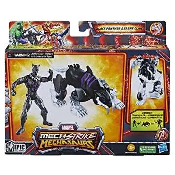 Show more Introducing the exhilarating BLACK PANTHER WITH SABRE CLAW action figure, where imagination meets adventure! This agile mech panther represents the valiant protector of Wakanda, T’Challa, in a stunning 4-inch scale. The Sabre Claw is not just a figure; it's a gateway to epic battles and thrilling stories. With a sleek design and articulation at 9 pivotal points, children can pose and battle their toys in countless imaginative scenarios. Young superheroes, ages 4 and up, can harness the incredible power of the panther, enhancing their playtime while developing creative thinking and motor skills.
