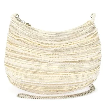 Show moreThe Mary Frances Glimmer Beaded Bridal Crossbody Clutch Handbag is more than just a handbag; it’s an exquisite accessory that embodies radiance and elegance. With its luxurious ivory color, this stunning clutch features rows of shimmering beads that cascade beautifully, reminiscent of a champagne waterfall and the twinkling stars in the night sky. Whether you're walking down the aisle or attending a glamorous event, this bag is designed to make you sparkle on your special day. Its dual functionality allows it to be worn as a crossbody for convenience or carried as a clutch for a sophisticated look, making it the perfect addition to any outfit.