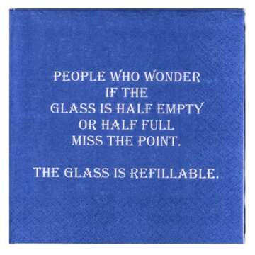 Mary Phillips Cocktail Napkins-"People who wonder if the glass is half empty or half full miss the point. The glass is refillable."
