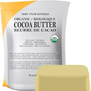 Show moreIntroducing the Mary Tylor Naturals Organic Cocoa Butter, the ultimate solution for all your skincare needs! This large 16-ounce bar is expertly crafted from 100% pure, USDA certified organic cocoa butter sourced from the lush landscapes of the Dominican Republic. Our non-deodorized cocoa butter is rich in antioxidants and free from pesticides and chemicals, making it an exceptional choice for anyone seeking natural, wholesome skincare options. Whether used directly on the skin or incorporated into homemade products, this cocoa butter offers unrivaled moisture and nourishment to your body.