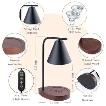 Marycele Black Candle Warmer Lamp with Timer, Birthday Gifts for Him Her, House Warming Gifts New Home Decor Aesthetic Black, Electric Dimmable Wax Melt Warmer for Jar Candles with 2 Bulbs