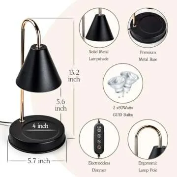 Show more The Marycele Candle Warmer Lamp is an exceptional fusion of safety, design, and efficiency for candle lovers. Designed to provide a seamless way to enjoy candle scents, this warmer stands out with its 50-watt halogen warming bulb, ensuring a clean, flame-free experience. Unlike traditional candles that pose fire hazards, this lamp is a breath of fresh air, creating an ambiance without smoke or soot. Not only does it enhance your home decor, but it also promotes sustainability by maximizing the use of your candles.