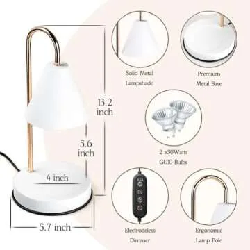 Equipped with a powerful 50-watt halogen bulb, the Marycele Candle Warmer Lamp features user-friendly controls such as adjustable brightness and a programmable timer. Melt your wax at varying paces to suit your mood and the lamp conveniently turns off after 2, 4, or 8 hours to give you peace of mind. Whether you're entertaining guests or enjoying a quiet evening at home, this lamp effortlessly fills your space with enchanting scents—no smoke or soot to worry about, making it a healthier choice for your environment!