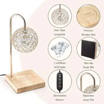 Marycele Candle Warmer Lamp with Timer, Home Decor Mothers Day Gifts for Mom, Gold Diamond Lamp with 2 Bulbs, Western Bedroom Accessories, Birthday Gifts for Women, Wax Warmer Lamp, Round Diamond