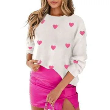 MARZXIN Women 2025 Casual Holiday Sweaters Long Sleeve Round Neck Valentine Sweater Tops Merry Christmas Sweaters Lightpink Heart01 M