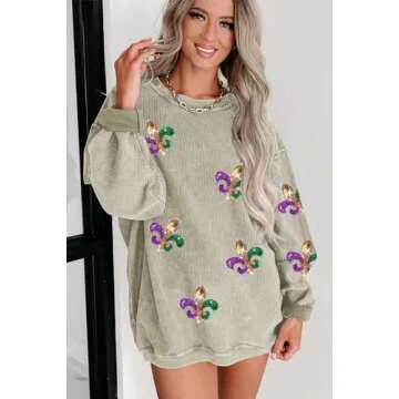 Show more Introducing the ultimate festive apparel for all you party lovers: the Women's Mardi Gras Long Sleeve Sweatshirt! This stylish piece from a renowned brand is designed with soft, skin-friendly materials that ensure a comfortable wearing experience, making it perfect for long celebrations. The standout feature of this sweatshirt is its stunning sequin detailing that embodies the spirit of Mardi Gras while radiating fun and festivity.