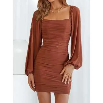 With its stylish square neck and elegant lantern sleeves, this mini bodycon dress perfectly balances sexy and chic vibes, making it an essential addition to your wardrobe for various occasions, from parties to casual outings.