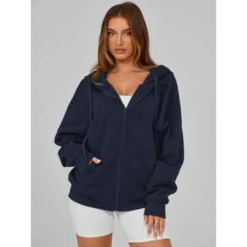 MASCOMODA Women Zip Up Hoodie Trendy Oversized Sweatshirt Casual Long Sleeve Fleece Jacket Fall Winter Clothes with Pockets(Navy,Small)