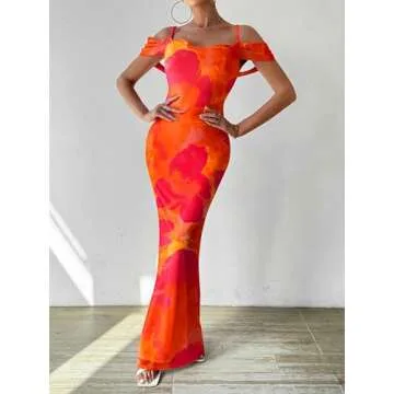 MASCOMODA Womens Summer Dresses 2025 Sleeveless Floral Maxi Dress Sexy Slit Bodycon Dress Slip Backless Long Cocktail Dresses(Orange Red,Medium)