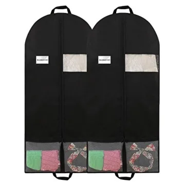Show more Introducing the MASKEYON 51" Garment Bags, the ultimate garment protection solution for dance costumes, wedding gowns, suits, and furs. Crafted from 100% high-quality polyester oxford fabric, these bags measure a generous 51x23 inches and are ideal for ensuring your precious outfits remain wrinkle-free and dust-free. Perfect for recitals and events, these bags are designed not only for storage but for travel as well. You’ll love the sleek, elegant black design that gets you compliments while providing exceptional functionality.