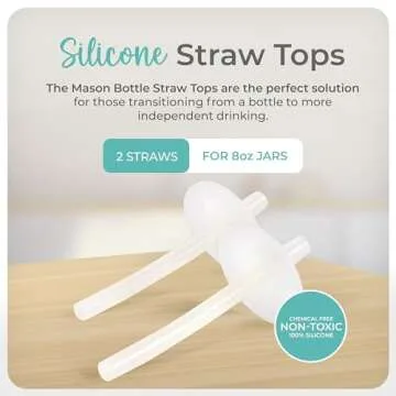 Show more Introducing the Mason Bottle Silicone Straw Topper (2 Pack), the ideal solution for parents striving to transform their regular-mouth mason jars into versatile sippy cups. This innovative product empowers you to easily transition your child from bottles to sippy cups at any age, promoting independent sipping in a safe and enjoyable way. Crafted from pure medical-grade silicone, these toppers are BPA-free and non-toxic, ensuring your little one's drinking experience is as safe as it is delightful.
