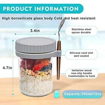 When it comes to meal prep jars, the Mason Jars for Overnight Oats stand out significantly against competitors. Unlike ordinary plastic containers that may not ensure freshness or safety, our glass jars are BPA-free and designed with meticulous detail for leak resistance. While other jars might not accommodate hot or cold foods effectively, our high boron glass excels in both capacities. Plus, the included stainless steel spoons offer added convenience and eco-friendliness, setting us apart.