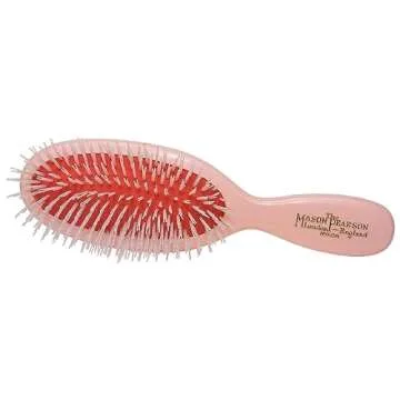 Show moreMason Pearson Pocket All Nylon Hair Brush in a stunning Pink is your ultimate style companion that blends tradition with modern aesthetics. Crafted meticulously in England, this oblong hairbrush features a high-quality nylon bristle design, perfected to glide seamlessly through hair. Whether you have thick, coarse hair or fine strands, this brush caters to all types, ensuring minimal breakage and maximum shine. With its handmade quality, every brush is a testament to craftsmanship, offering a luxurious experience that transforms daily grooming into a pampering session. The sleek pink finish is not only visually appealing but also makes a statement about your personal style.