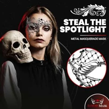 Masquerade Mask for Women - Elegant Metal Half Face Phantom of The Opera Mask for Mardi Gras, Prom, Halloween, Venetian Parties, Masquerade Balls and Costume Events (Vintage Black Sl)