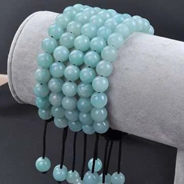 MASSIVE BEADS Knitting Adjustable Mens Womens Natural Gemstone 8MM Round Beads Healing Power Stretch Bracelet (Amazonite, 8mm)