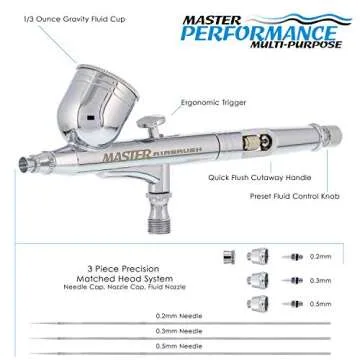 Master Airbrush G233 Pro Set with 3 Nozzle Sets - Dual-Action Gravity Feed Airbrush with Cutaway Handle and How-To Guide