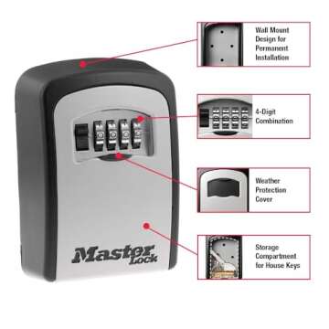 Master Lock Set Your Own combination Wall Mount Lock Box, 5 Key capacity, Black 5401EC