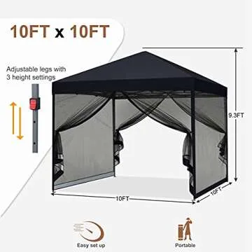 MASTERCANOPY Pop-Up Setup Outdoor Canopy with Netting Screen Walls (10x10, Black)