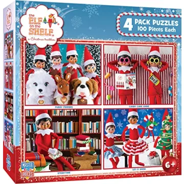 MasterPieces Puzzle Set - 4-Pack 100 Piece Jigsaw Puzzle for Kids - Elf on the Shelf 4-Pack - 8"x10"