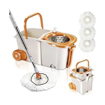 MASTERTOP Flat Floor Mop and Bucket Set - Hands Free Mop Bucket with Wringer Set, 5 Reusable and Washable Microfiber Dust Mop Pads, Stainless Steel Handle Mop Cleaning Bucket,for home,kitchen,Hardwood