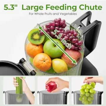 Masticating Juicer Machines, 5.3" Inch Feeding Chute Supports Whole Fruits and Vegetables,350W Slow Cold Press Juicer,Easy to Clean, Light-Stainless Steel