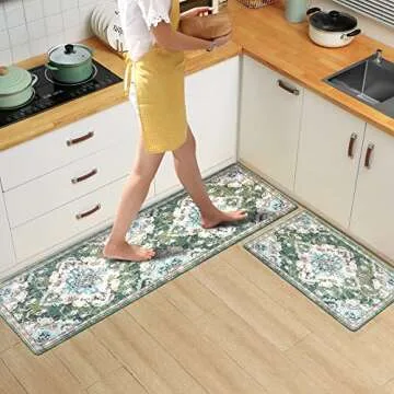 Each mat showcases a modern aesthetic that aligns beautifully with any interior style, adding a pop of color with the trendy green hue appreciated in user reviews. The waterproof surface ensures that any spills or stains can be effortlessly wiped away, helping your mats maintain a clean and fresh appearance with minimal effort. Whether you're preparing a family meal or tidying up after dinner, these mats will make your chores more enjoyable and less taxing on your body.