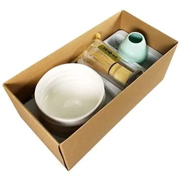 Matcha Tea Set Includes Matcha Bowl, Whisk and Stand for Traditional Japanese Tea Ceremony or Everyday Use by Princeton Wares. (Plum Blossum White)