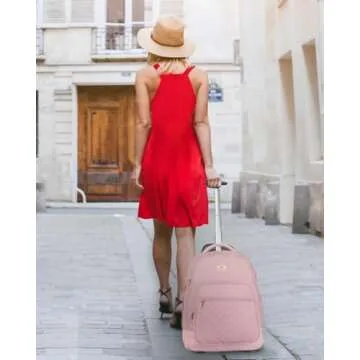 MATEIN Rolling Backpack for Women, 17 Inch Travel Laptop Backpacks with Wheels, Large Carry On Business Luggage Roller Backpack, Waterproof Trolley Suitcase Overnight College Work Computer Bag, Pink