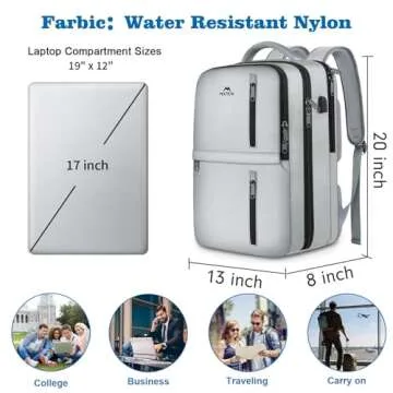 MATEIN Travel Laptop Backpack, 17 Inch Flight Approved Carry on Backpack for Men & Women, 40L Water Resistant Anti-Theft Luggage Daypack Business College Weekender Overnight Travel Bag, Gray