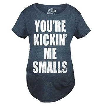 Maternity Kicking Me Smalls Funny T Shirt Pregnancy Announcement Novelty Tee Funny Graphic Pregnancy Tee Baseball Maternity Wear Cool Movie T Shirt Funny Navy M