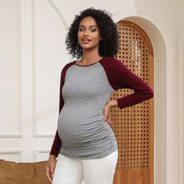 Compared to other maternity tops, our Maternity Long Sleeve Shirts Raglan Plaid Print T-Shirt stands out with its unique design that combines fashion and function. Many maternity shirts on the market lack breathability or style, but this top’s plaid print and baseball neck provide a trendy twist that others simply do not. Plus, its adaptability through all pregnancy stages offers unrivaled comfort and ease. Others might miss out on the essential side ruching feature, which adds an extra touch of fit and flexibility that adjusts as you grow.