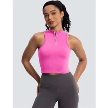 The unique half zipper design adds flair and functionality. You can easily adjust the zipper for your desired level of coverage, while a fixable front zipper buckle ensures it stays in place, eliminating any distractions during your exercises. Furthermore, this tank top includes removable bra pads, offering light support and the versatility to wear it according to your comfort level.