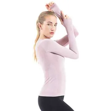 Show more Discover the ultimate blend of style, comfort, and performance with our premium long sleeve athletic top. Crafted by a renowned brand, this top is designed with a seamless fabric that combines 90% Nylon and 10% Elastane, ensuring moisture-wicking properties and a lightweight feel that keeps you cool during intense workouts. The innovative thumb holes design not only protects your hands but also keeps the sleeves securely in place, allowing you to focus on your exercise without any distractions.
