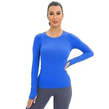 MathCat Women's Seamless Long-Sleeved Yoga Top with Thumb Holes - Lakeblue