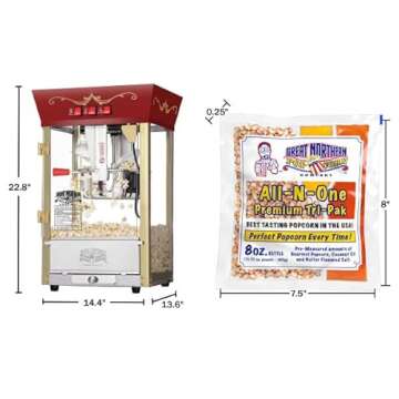 Matinee Countertop Popcorn Machine – 3 Gallon Popcorn Popper, 8oz Kettle, Warmer, and 24 All-In-One Popcorn Packs by Great Northern Popcorn (Red)