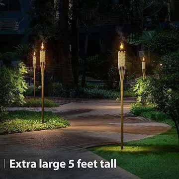 Show moreIlluminate your outdoor space and enhance your entertaining experience with the **Matney Bamboo Torches for Outside Mosquitoes Repellent**. Standing proudly at **60 inches**, this set of **8 torches** is designed not only for light but also to fend off pesky bugs. Each torch features a **fiberglass wick** that guarantees a uniform flame, a durable **wooden snuffer cap** for extinguishing with ease, and a speared bottom that plants firmly in the ground, ensuring stability during those breezy evenings. Whether you’re hosting a beach-themed luau or a cozy outdoor wedding, these torches add a bright, festive touch to any celebration, making your backyard the ultimate gathering spot.