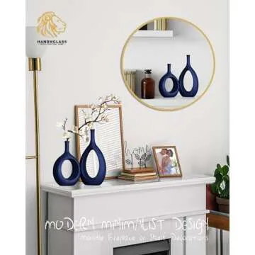 Matt blue ceramics vase, Thin stem vase for Home Decor, Set of 2 Elegant Decorative Vase for bookshelves, Side table, Mantel, Fireplace, Kitchen, Living Room Decoration