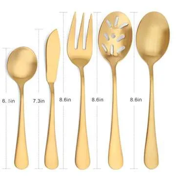 Why You Will Love This Product? You will cherish the elegant touch that the Matte Gold Serving Set brings to your dining occasions. Beyond just utensils, they create an ambiance of sophistication and taste, converting everyday meals into celebrations. Imagine your guests' delight as they admire the unique design and quality of your servingware, contributing to a dining experience that is both delightful and memorable. Invest in this remarkable set today to transform how you entertain and enjoy meals with family and friends, ensuring every dining experience is special.