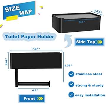 Matte Toilet Paper Holder with Shelf,Stainless Steel Wall Mounted Toilet Paper Holder with Flushable Wipes Dispenser,Reversible Flushable Wipes Dispenser, and Storage for Bathroom - Grooved Black