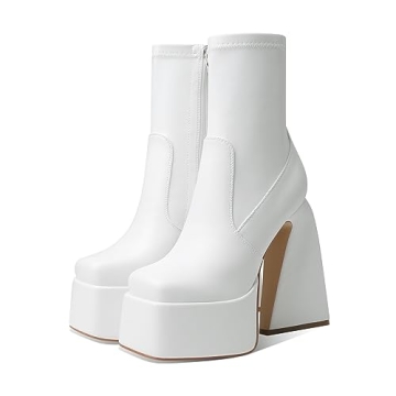 Mattiventon Platform Boots for Women Chunky High Heel Ankle Boots Mid Calf Combat Boots