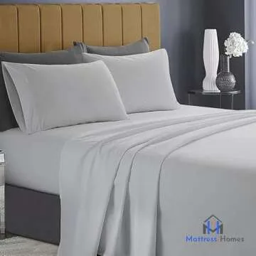 Mattress-Homes 600 Thread Count 100% Long Staple Soft Combed Cotton, 4 Piece Sheets Set, Queen Size,Smooth & Soft Sateen Weave, Luxury Hotel Collection Bedding, Light Grey Solid