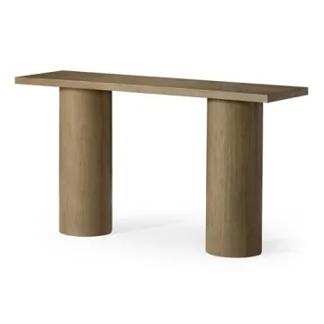 Show more Introducing the Maven Lane Lana Contemporary Rectangular Accent Console Table – a stylish blend of modern minimalism that redefines your space with elegance. This stunning piece features bold, sturdy cylindrical wooden legs, perfectly paired with a slim wood tabletop to create a visual statement in your entryway or living area. Designed with a refined grey finish, this console table serves not only as functional furniture but also as an artistic addition to your home décor. Measuring 54 x 16 x 30 inches, it's perfectly sized for small spaces while providing ample surface area for decor, plants, or your favorite family photos. Its craftsmanship showcases the beauty of solid wood and ensures it stands the test of time.