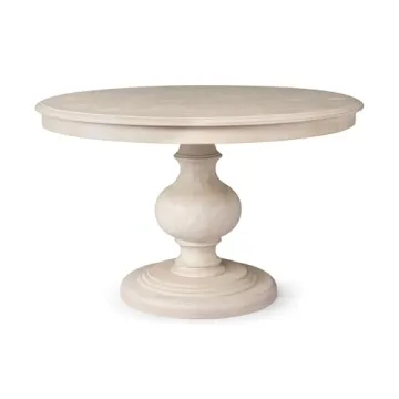 Show moreIntroducing the Maven Lane Zola Traditional Large Round Circle Wooden Pedestal Dining Table, a stunning centerpiece perfect for modern kitchens, bistros, or card games. Crafted from solid wood and designed with an opulently carved circle pedestal base, this table emphasizes both functionality and style. The generous round top provides ample communal space, making it ideal for gatherings with family and friends. Its distressed wood finish adds a touch of rustic charm, seamlessly blending with your home décor whether in the dining area or breakfast nook.